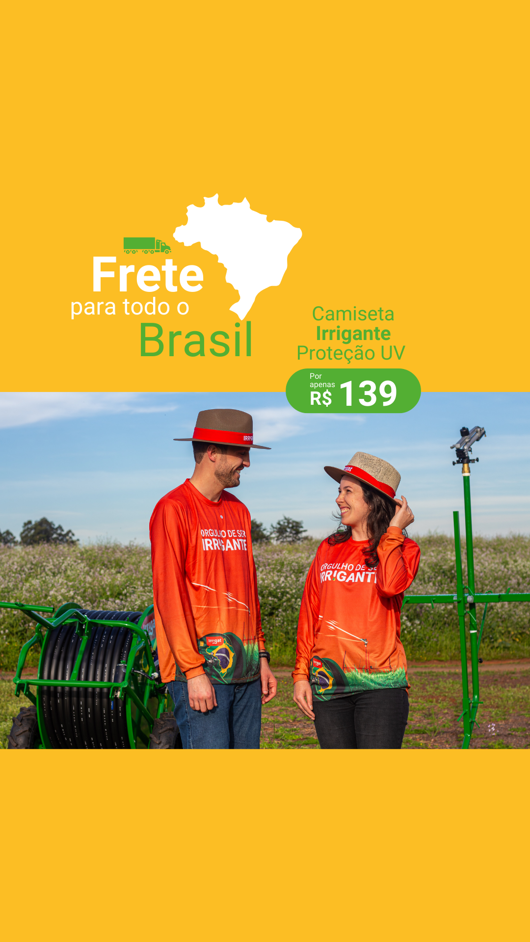Se você também sente que agro é gente, é suor, é fé e é família… então seja bem-vindo(a) ao Mundo Irrigat. Aqui, quem faz o campo crescer com a irrigação também veste essa paixão.