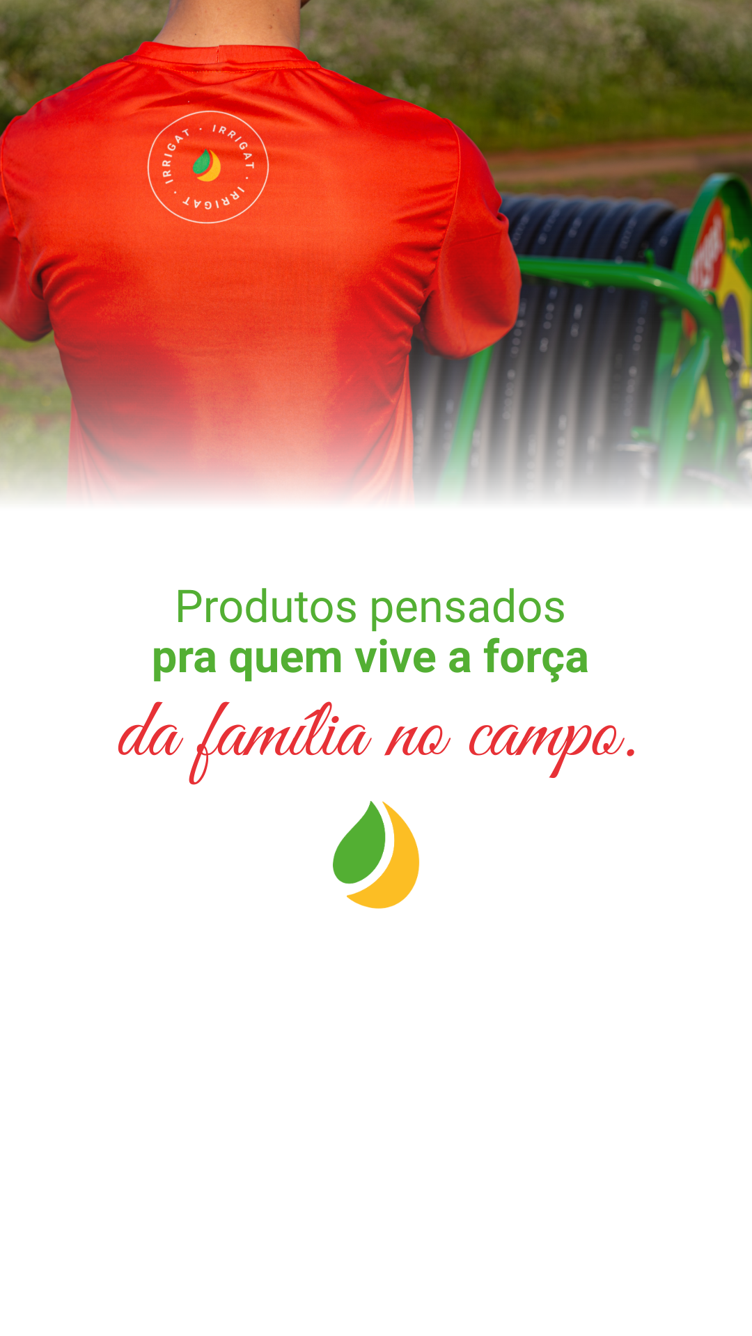 Mais do que irrigação. Mais do que produtos. O Mundo Irrigat nasceu pra carregar no peito — e no dia a dia — tudo aquilo que a gente acredita.