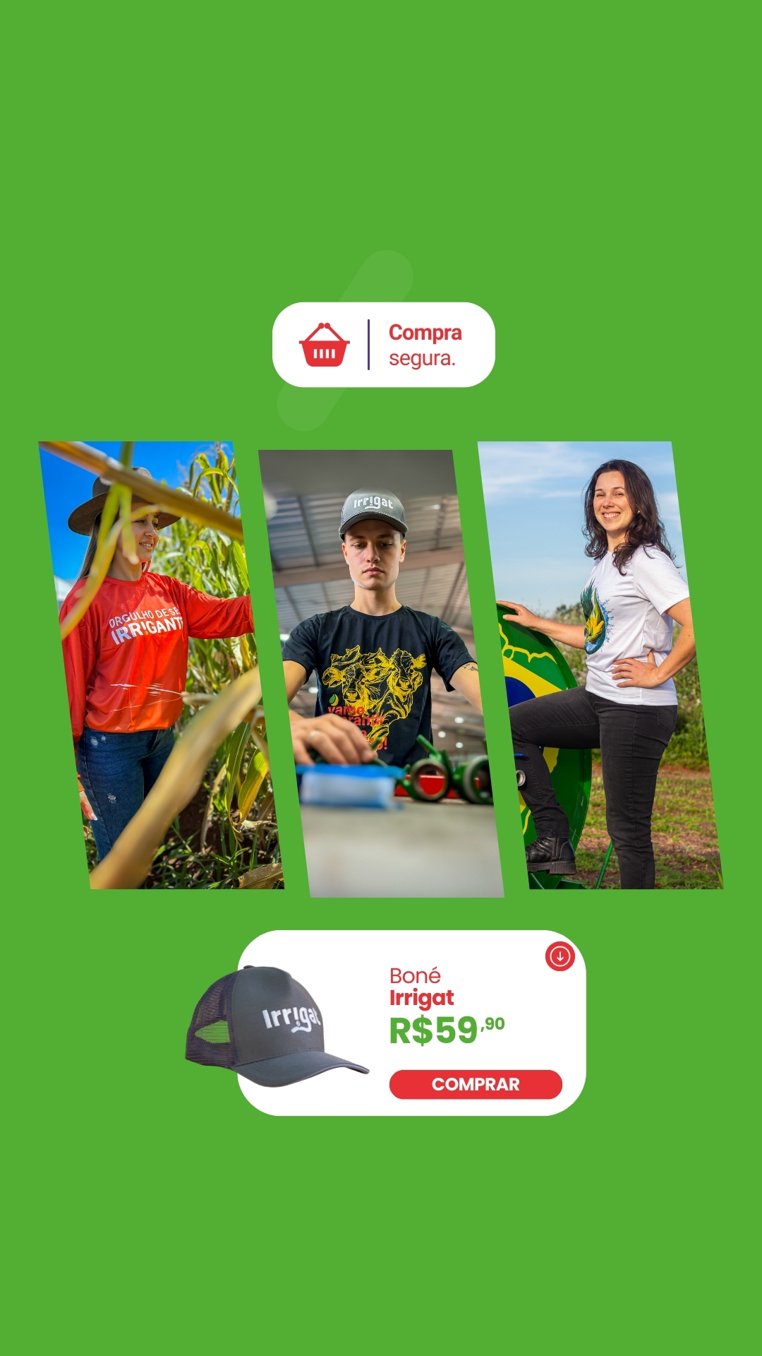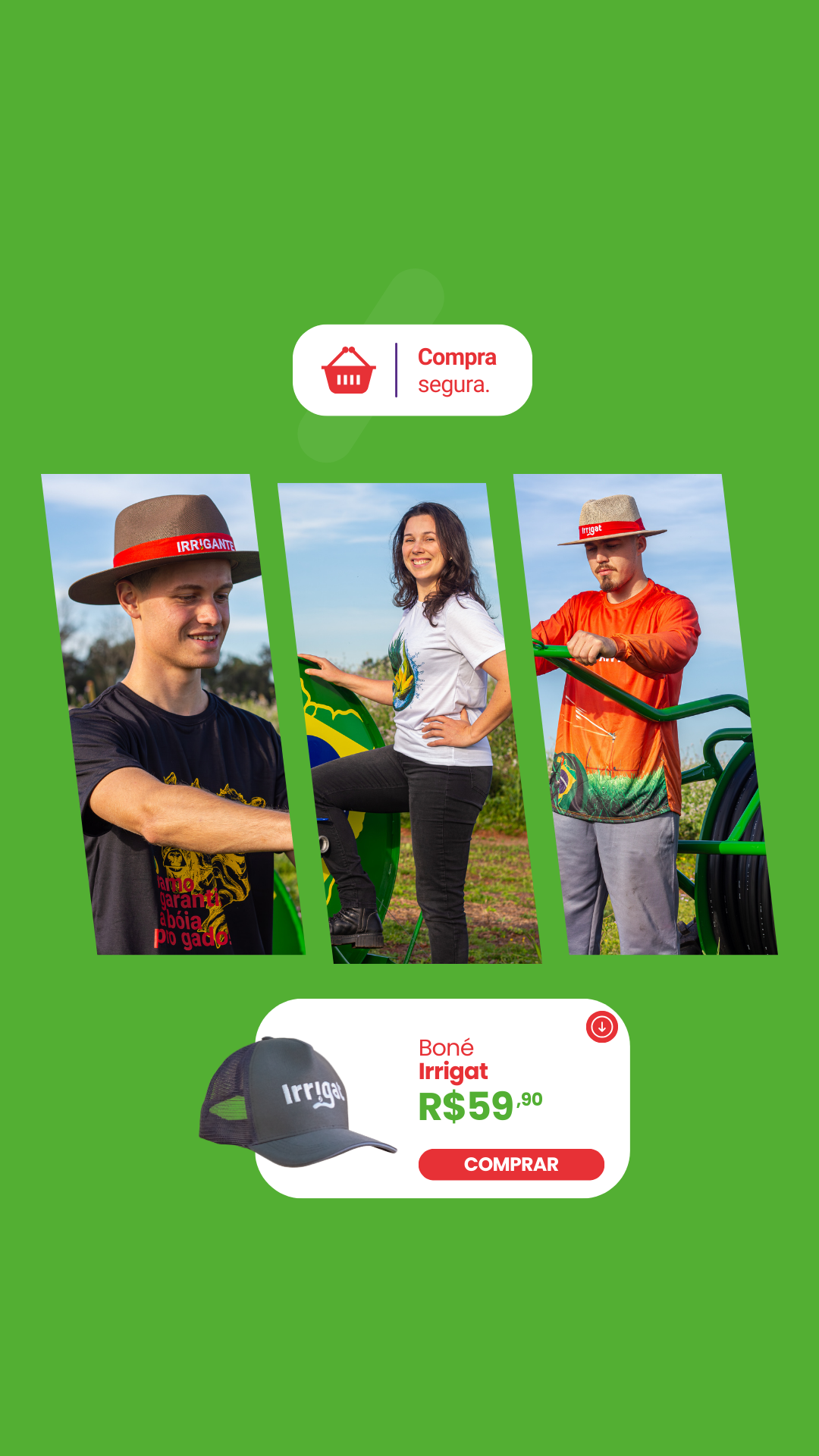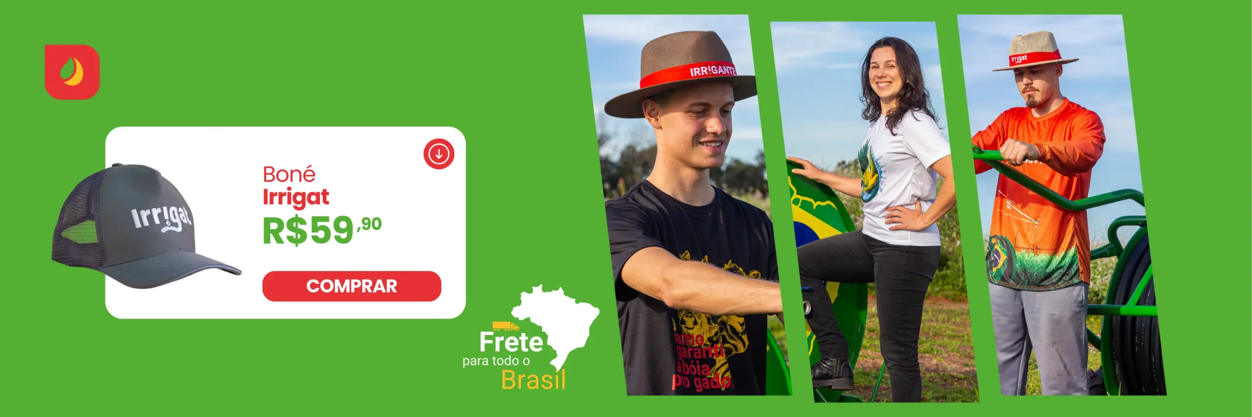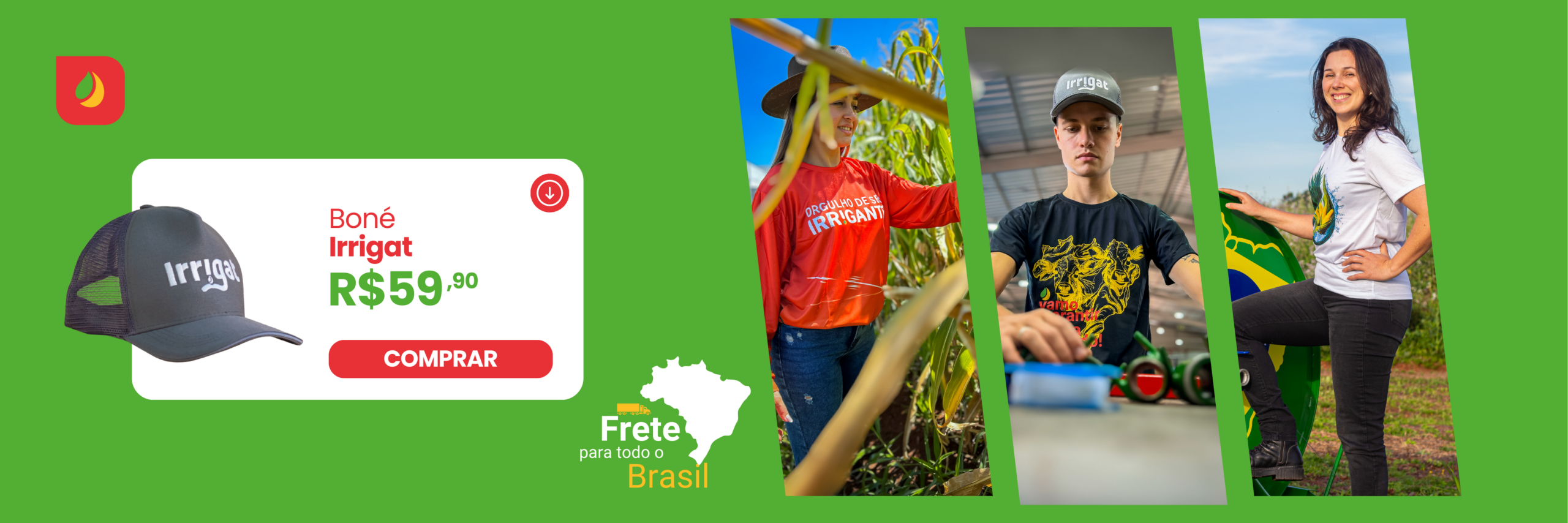 Aqui você encontra camisetas, chapéus, bonés, canecas, cadeiras e acessórios que representam o espírito da Irrigat — simples, forte, com os pés no chão e o coração no agro.