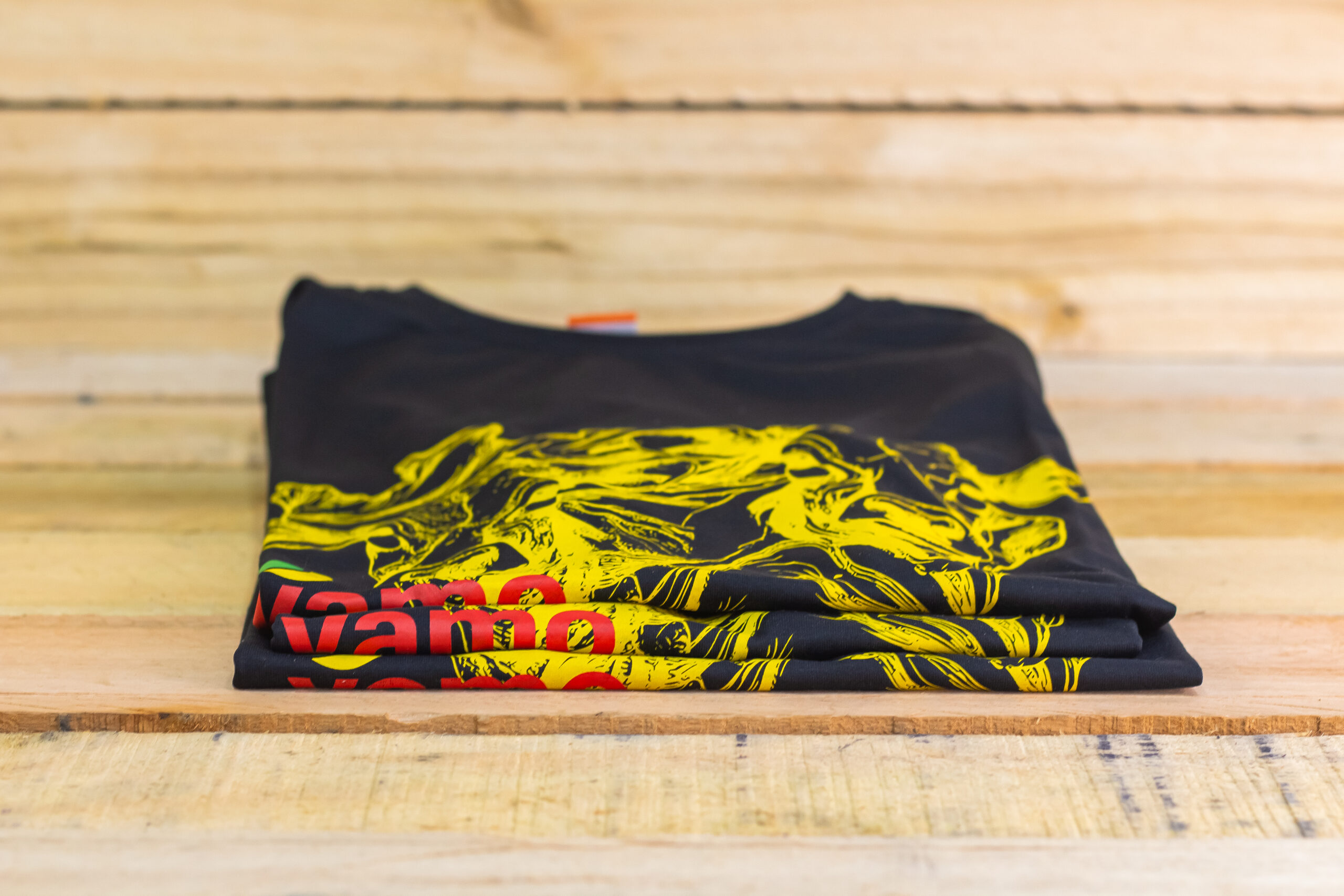 Disponível na cor preta, ela possui tecido poli viscose anti pilling (não forma bolinha), com composição: 65% poliéster + 35% viscose. A estampa é feita em serigrafia.