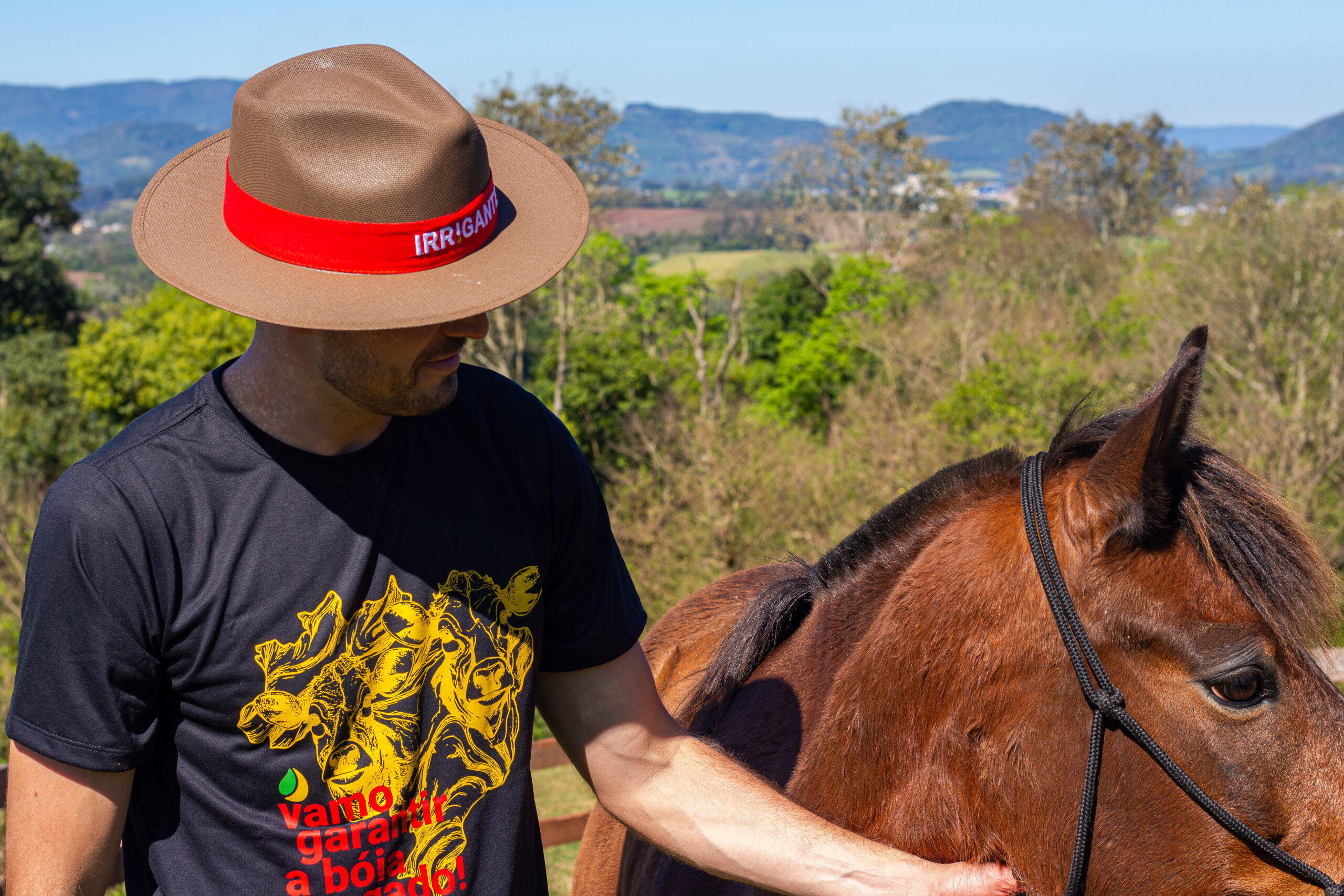 A estrutura vem com copa australiana e aba padrão de 7 cm. O chapéu tem carneira de elástico antialérgico. O destaque fica por conta da faixa com Irrgante bordado em fita de tecido.
